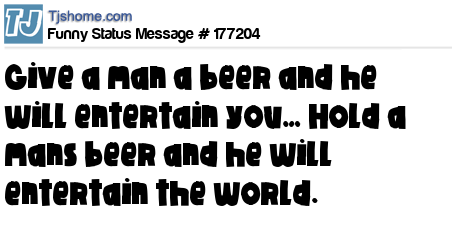 X Give a man a beer and he will entertain you… Hold a mans beer and he will entertain the world.