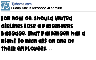 X says For now on, should United airlines lose a passengers baggage. That passenger has a right to kick a$$ on one of their employees. . .