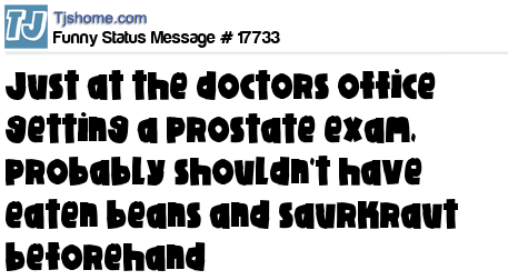 X was just at the doctors office getting a prostate exam, probably shouldn't have eaten beans and saurkraut beforehand