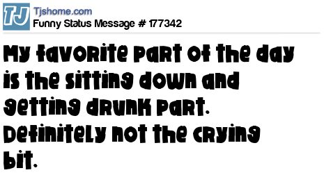 X says My favorite part of the day is the sitting down and getting drunk part. Definitely not the crying bit.