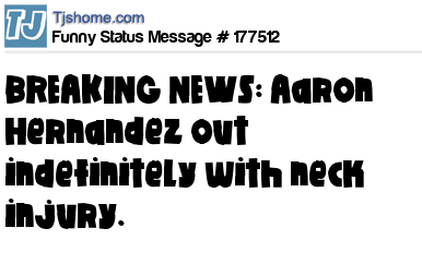 X BREAKING NEWS: Aaron Hernandez out indefinitely with neck injury.