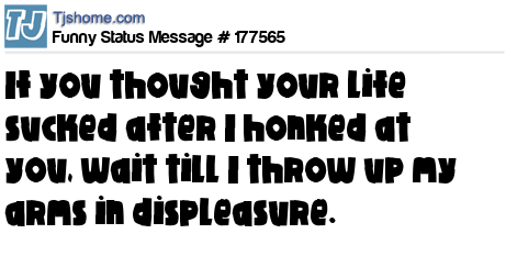 - # 193440 If you thought your life sucked after I honked at you, wait till I throw up my arms in displeasure.