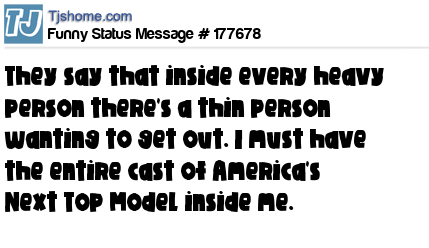 X They say that inside every heavy person there's a thin person wanting to get out. I must have the entire cast of America's Next Top Model inside me.