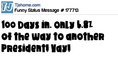 100 days in and Hillary is STILL not President! (pops champagne, toasts and the party keeps going)
