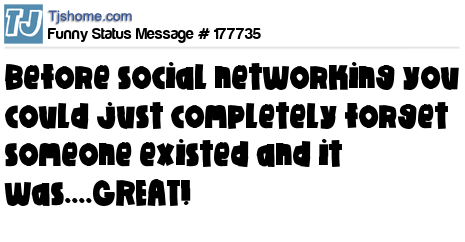 - # 151327 Before social networking you could just completely forget someone existed. And it was great