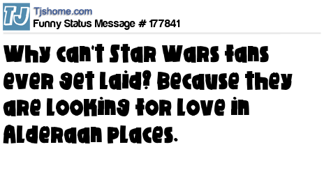 - # 154102 Star Wars fans never get laid because they're looking for love in Alderaan places.