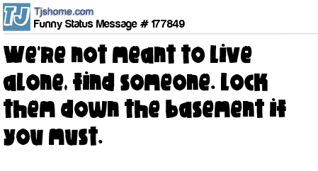 X says We're not meant to live alone, find someone. Lock them down the basement if you must.