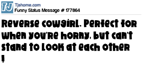 X says Reverse cowgirl. Perfect for when you're horny, but can't stand to look at each other !