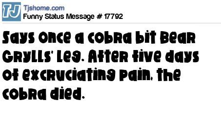 X says Once a cobra bit Bear Grylls' leg. After five days of excruciating pain, the cobra died.