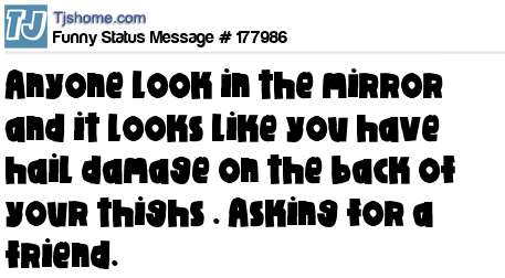 X Anyone look in the mirror and it looks like you have hail damage on the back of your thighs . Asking for a friend.