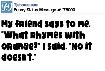 X says My friend says to me, "What rhymes with orange?" I said, "No it doesn't."