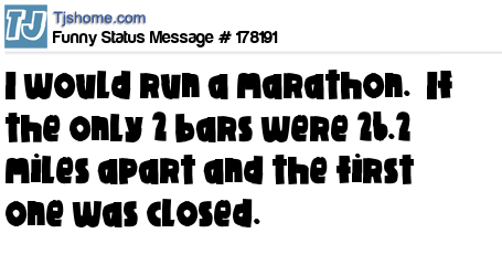 X says I would run a marathon. If the only 2 bars were 26.2 miles apart and the first one was closed.