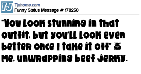 X says "You look stunning in that outfit, but you'll look even better once I take it off" ~ Me, unwrapping beef jerky.