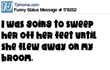 - # 89716 Ladies: Stop looking for a man to sweep you off your feet.....Sweeping is your job.