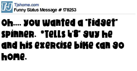 X says Oh.... you wanted a "Fidget" spinner. *Tells 4'8" guy he and his exercise bike can go home.