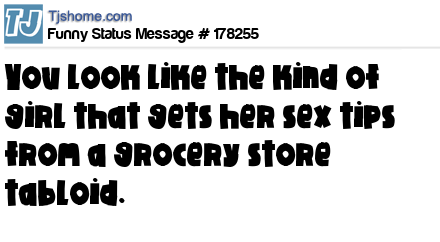 X says You look like the kind of girl that gets her sex tips from a grocery store tabloid.