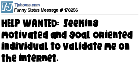 X says HELP WANTED: Seeking motivated and goal oriented individual to validate me on the internet.