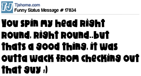 X says you spin my head right round, right round..but thats a good thing, it was outta wack from checking out that guy ;)