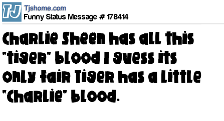X says Charlie Sheen has all this "tiger" blood I guess its only fair Tiger has a little "Charlie" blood.