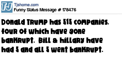 X says Donald Trump has 515 companies, four of which have gone bankrupt. Bill & hillary have had 5 and all 5 went bankrupt.