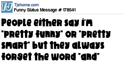 X says people either say i'm "pretty funny" or "pretty smart" but they always forget the word "and"