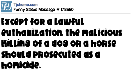 X says Except for a lawful euthanization, the malicious killing of a dog or a horse should prosecuted as a homicide.