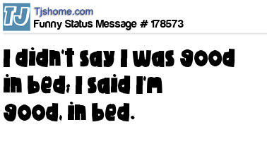 X I didn't say I was good in bed; I said I'm good, in bed.