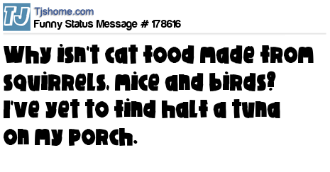 X Why isn't cat food made from squirrels, mice and birds? I've yet to find half a tuna on my porch.