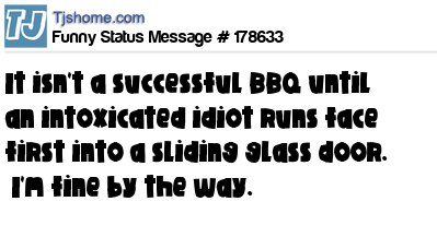 X is It isn't a successful BBQ until an intoxicated idiot runs face first into a sliding glass door. I'm fine by the way.