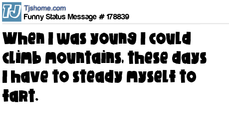 - # 200125 When I was young I could climb mountains. Now, I have to steady myself to fart.