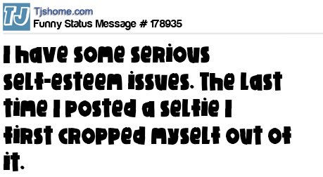 X says I have some serious self-esteem issues. The last time I posted a selfie I first cropped myself out of it.