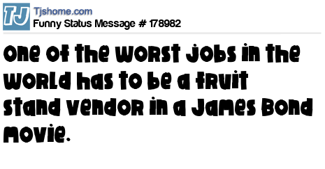 X says One of the worst jobs in the world has to be a fruit stand vendor in a James Bond movie.