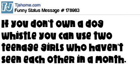 - # 203136 If you don't own a dog whistle then you can always use two teenage girls who haven't seen each other in a month.