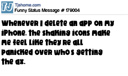 - # 63797 Whenever I delete an app on my iPhone, the shaking icons make me feel like they're all panicked over who's getting axed.
