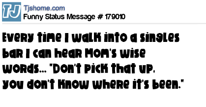 - # 100526 Every time I walk into a singles bar, I can hear Mom's wise words: "Don't pick that up!! You don't know where it's been!!!"