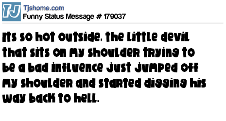 X says Its so hot outside, the little devil that sits on my shoulder trying to be a bad influence just jumped off my shoulder and started digging his way back to hell.