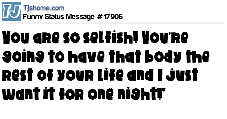 - # 59645 You are so selfish! You're going to have that body the rest of your life and I just want it for one damn night!"