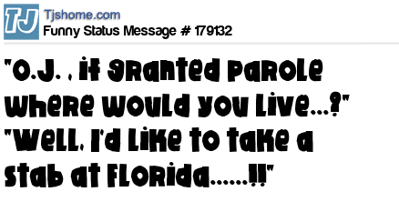 X says "O.J. , if granted parole where would you live...?" "Well, I'd like to take a stab at Florida......!!"