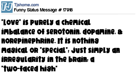X "Love" is purely a chemical imbalance of serotonin, dopamine, & norepinephrine. It is nothing magical or "special"; just simply an irregularity in the brain; a "two-faced high"