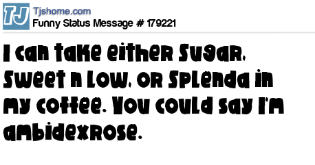 - # 188649 I can take either sugar, Sweet n Low, Splenda or Stevia in my coffee. You could say I'm ambidexrose.