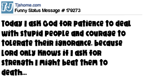 - # 19304 asks for patience to deal with stupid people and courage to tolerate their ignorance because Lord only knows if I ask for strength I will beat them to death!