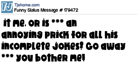 X is it me, or is *** an annoying prick for all his incomplete jokes? Go away *** you bother me!