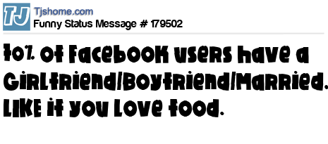 X 70% of Facebook users have a Girlfriend/Boyfriend/Married… LIKE if you love food.