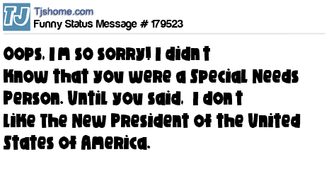 X says Oops, I’m so sorry! I didn’t know that you were a Special Needs Person. Until you said, “I don’t like The New President of the United States of America.”