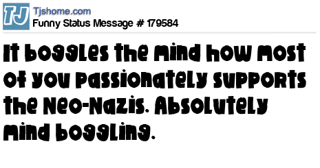 X is It boggles the mind how most of you passionately supports the Neo-Nazis. Absolutely mind boggling.