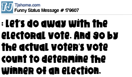 X is : Let's do away with the electoral vote. And go by the actual voter's vote count to determine the winner of an election.