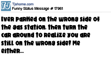 X is Ever parked on the wrong side of the gas station, then turn the car around to realize you are still on the wrong side? Me either...