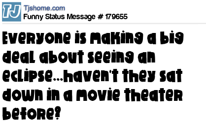 X says everyone is making a big deal about seeing an eclipse...haven't they sat down in a movie theater before?