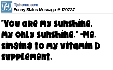 X says "You are my sunshine, my only sunshine." -Me, singing to my vitamin D supplement.