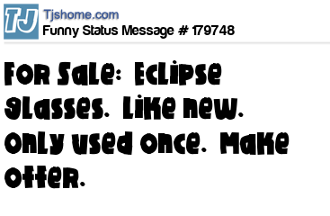 X says For Sale: Eclipse glasses. Like new. Only used once. Make offer.